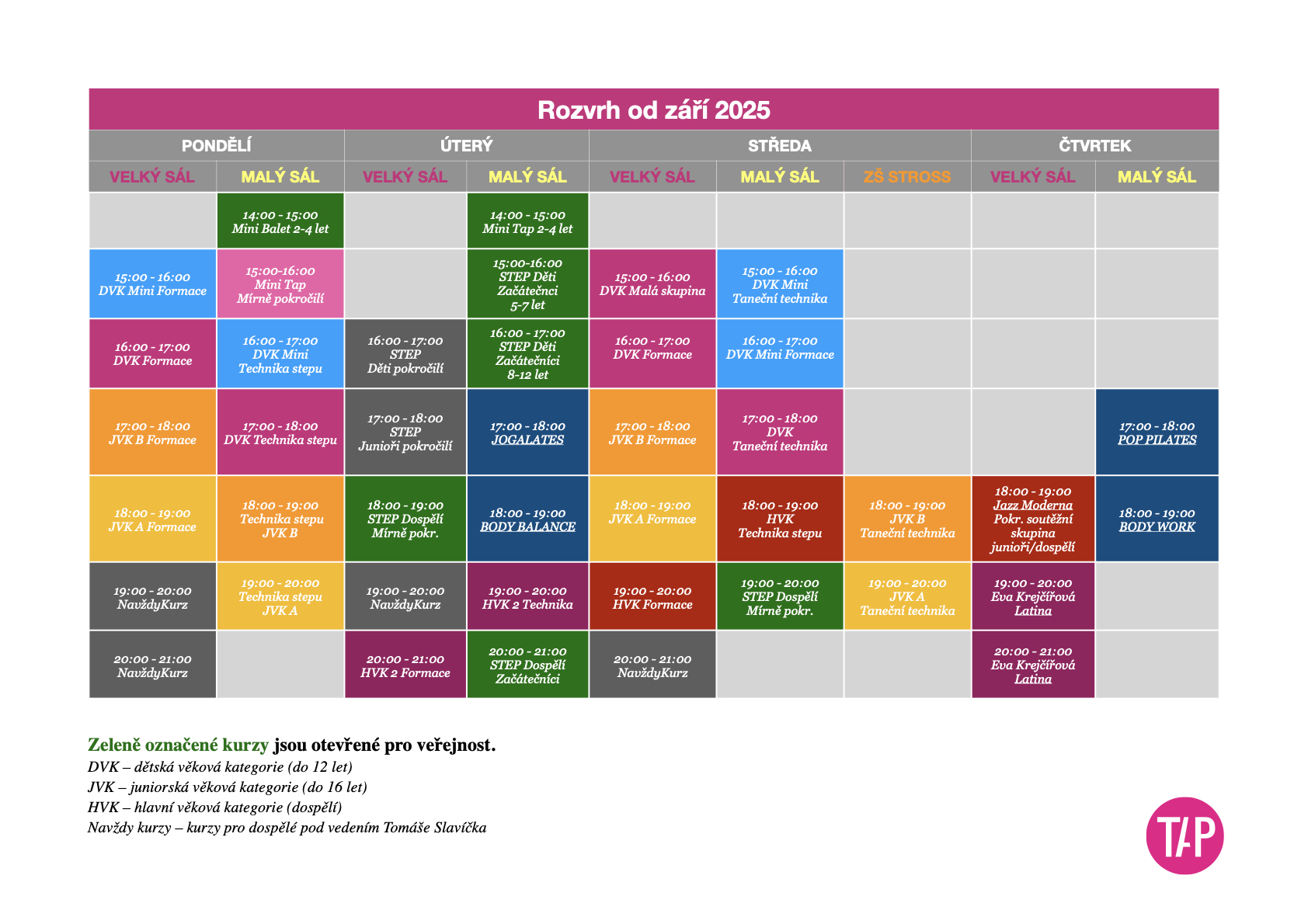 Do 20.6.2025 jsou všechny kurzy podle aktuálního rozvhu.